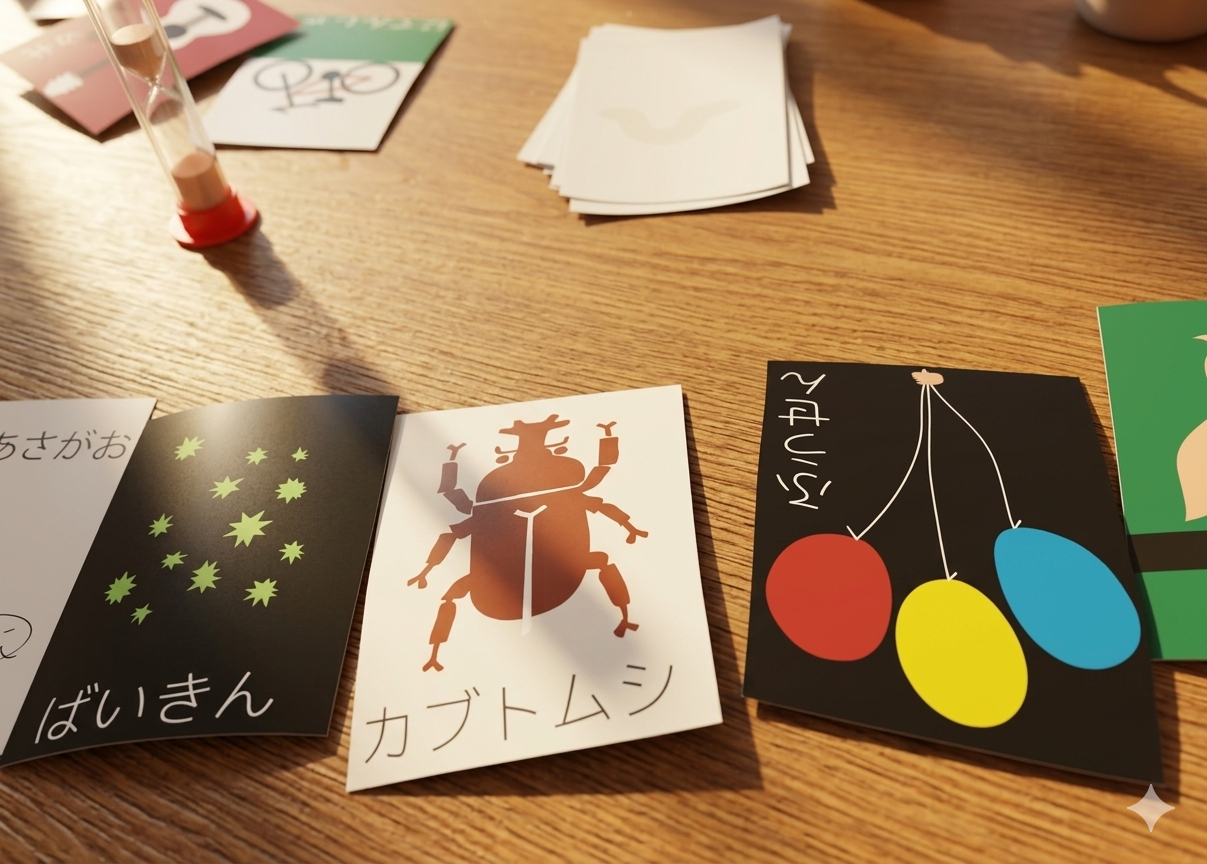 「だいたい同じ」の基本「発想モード」は、手札の中から自分でカードを選び、共通点を言えたらokの方向に戻ることにした。誰かに評価してもらうより前に、自分の中で「これでいける」と思えるかどうか。そこが楽しさの核心だと気づいたから。