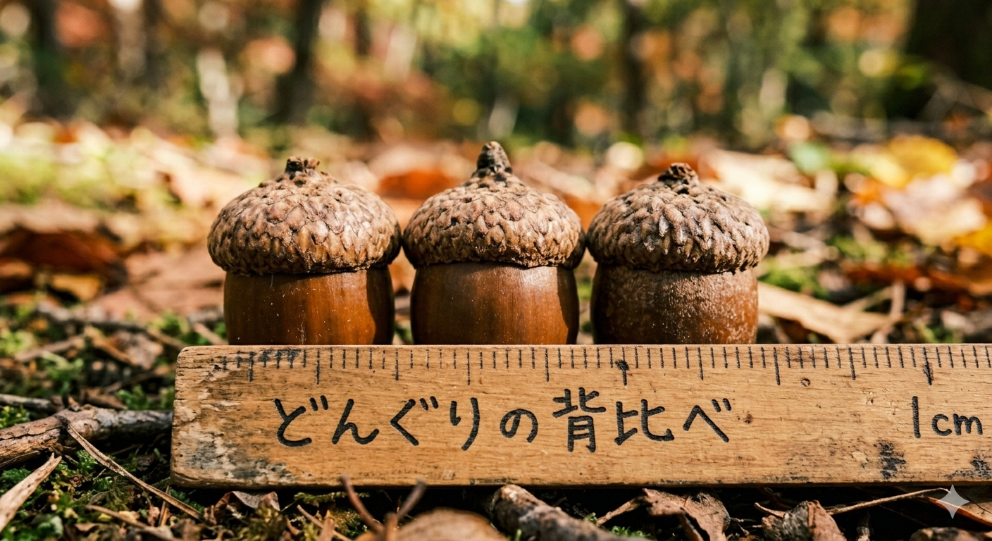 私たちが「どんぐり」と一括りに呼ぶものは、実は背の高さも色も一つひとつ異なる。